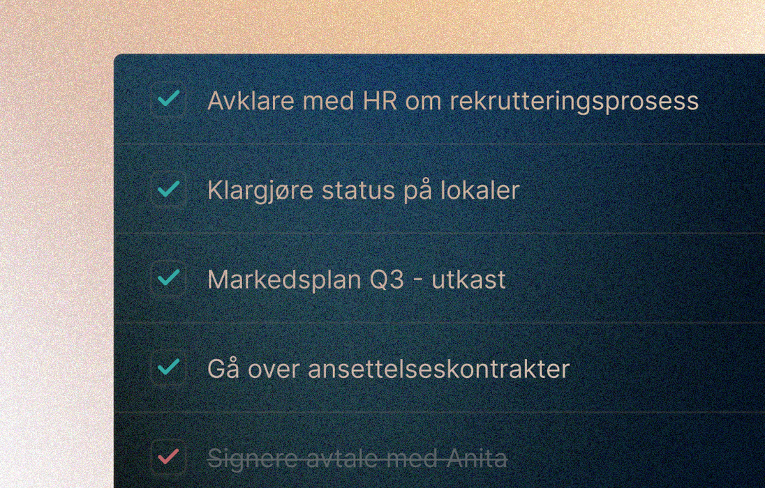 Vi har satt opp en liste over de overordnede temaene et styre i en bedrift må forholde seg til.